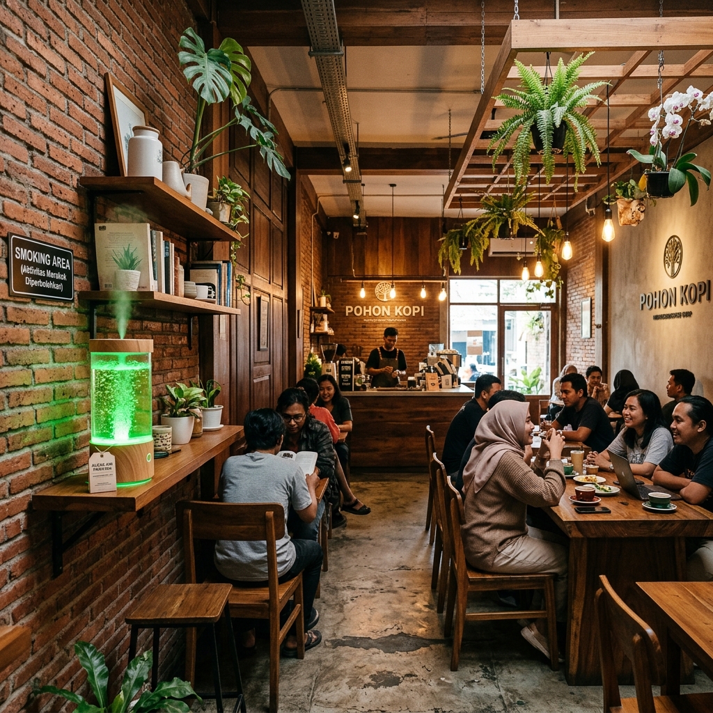 Pohon Kopi utilized our specialized Cafe solutions to clear out dense cigarette smoke without relying entirely on massive exhaust systems. Our Aither units dynamically scrubbed the air, enhancing customer comfort securely.